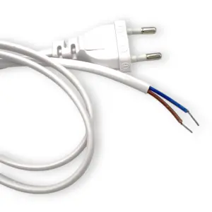 Almindelig hvid flad 230V ledning på 1,8 meter med stikprop og LED lysdæmper til dæmpbare LED pærer og LED drivere.