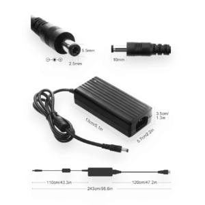 Der medfølger 120 centimeter 230V tilslutningsledning, 110 centimeter DC ledning og et løst DC-hunstik, hvis man ønsker at tilslutte stikfrie ledninger til strømforsyningen