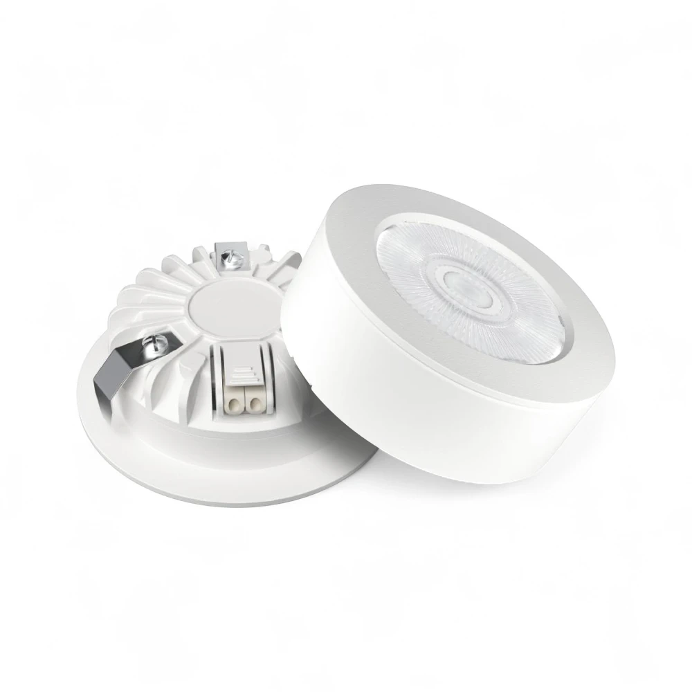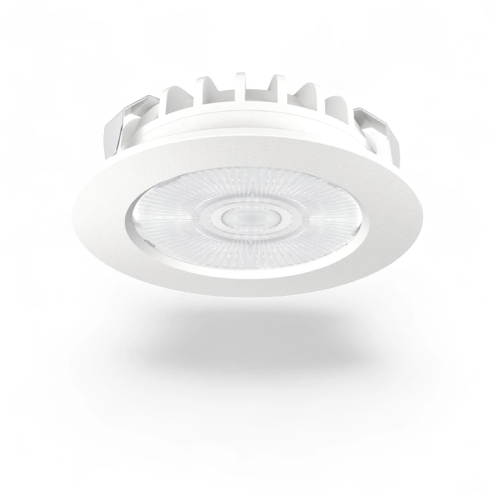 Det leveres med en brændingsfri optik som spreder lyset i en lyskegle på 60° og kan, med sin IP44-klassificering, monteres i alle indendørs rum – også vådrum.