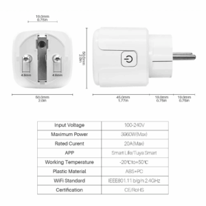 230V, 20A, Tuya, App- og Stemmestyring, 2,4GHz, m. jord