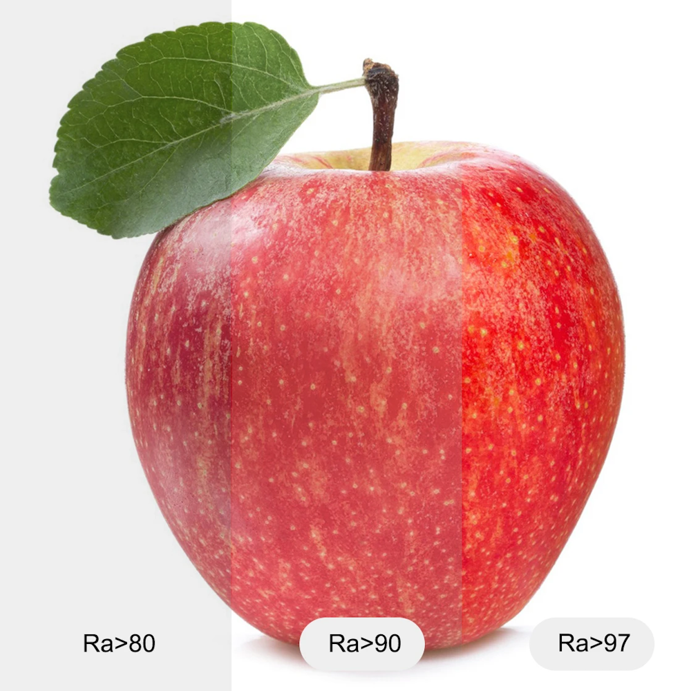 Sammenlignet med ægte lys som indekseres fra 1 til 100, ligger vi derfor så tæt som vi kan komme ægte lys, inden for kunstig belysning.