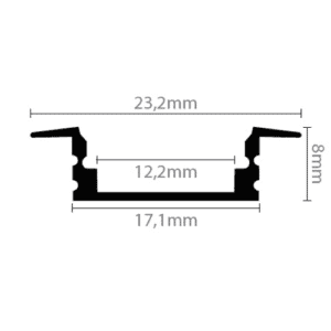 Komplet aluminiumsprofil på 1 meter til planforsænkning i eksempelvis lofter, vægge, møbler, trapper m.m.