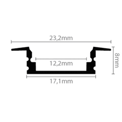 Komplet aluminiumsprofil på 1 meter til planforsænkning i eksempelvis lofter, vægge, møbler, trapper m.m.