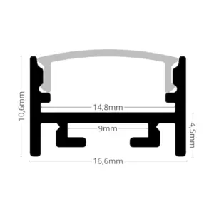 Diskret sortmalet alu-profil på 1 meter til overflademontering.