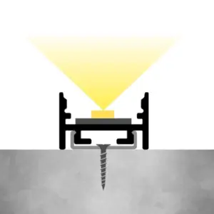 Den udemærker sig ved sine skjulte monteringsklips og at der er mulighed for at skære i smig og fiksere med de særlige beslag, som kan samle og vinkle profilen, som man ønsker det.