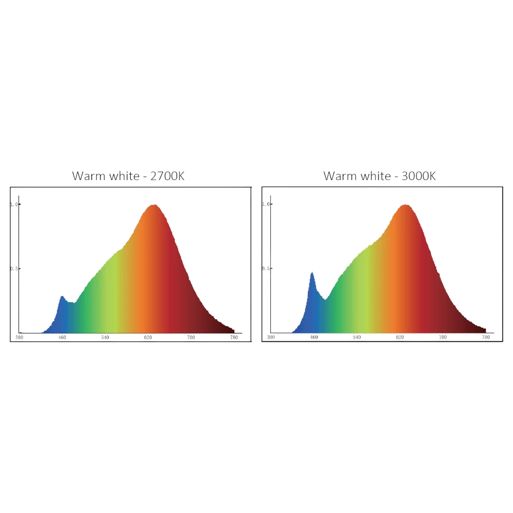 Den lyser med en almindelig varm hvid lysfarve med en farvetemperatur på 2700 kelvin.
