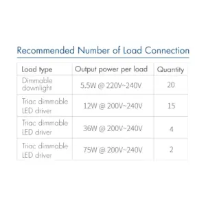 Den kan bruges til dæmpning af både LED, Halogen og Metalhalogen. Der er en maksimal belastning på 200W ved brug med LED og 400W ved brug med Halogen og Metalhalogen.