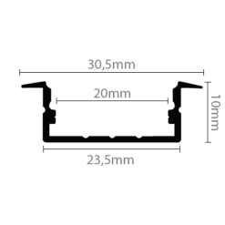 Den indvendige bredde er 20 mm., hvilket betyder at den kan bruges med alle vores LED strip.