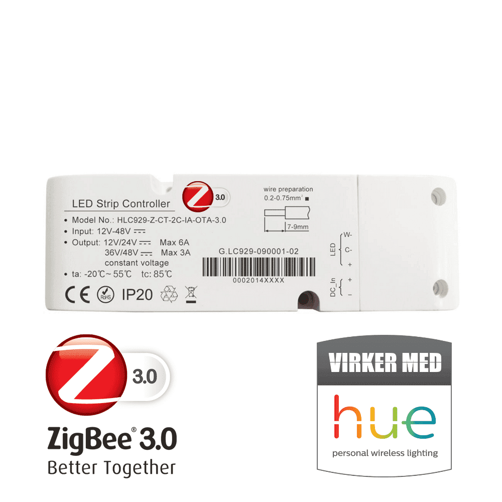 SMART Zigbee 3.0 CCT controller – Virker med HUE Udgivet 13. januar 2022 den 1000 × 1000 i SMART Zigbee 3.0 CCT controller – Virker med HUE Kvalitets LED controller til styring af enkeltfarvede- og CCT LED Bånd, samt LED troldtektskinner. Spændingsinput og output fra 12V til 48V.Perfekt til bolig, kontor, café, bar, stue, bad, værelse, børneværelse, gang, lobby, lounge, hall, m.fl.← ForrigeNæste →